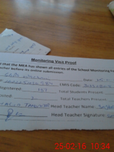 | Attendance Register | Head Teacher | MEA with School | Visit Proof |