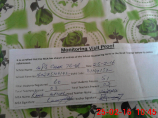 | Monitoring Date: 25-02-2016 | Start Time: 25-02-2016 10:30 AM | End Time: 25-02-2016 10:58 AM | Name of MEA: Ra**** Mu**** Aj**** BN**** 22 | |