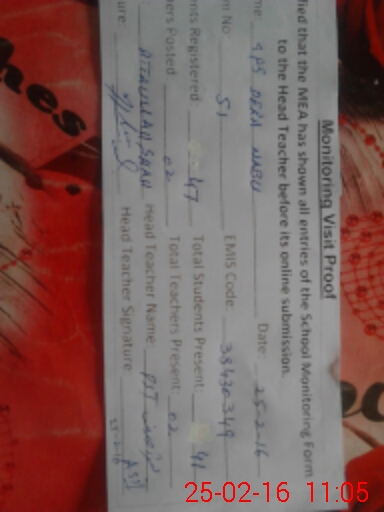 | Certified that this School was Inspected by the Undersigned MEA/DMO Today and the Information Stated Above is as Per Record. | |||||