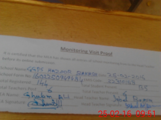 | EMIS Code: 32310188 | Name of School: GGPS HAZOOR BAKHSH | |||