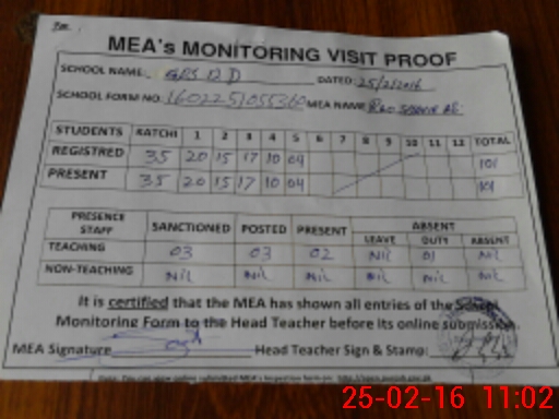 | Certified that this School was Inspected by the Undersigned MEA/DMO Today and the Information Stated Above is as Per Record. | |||||