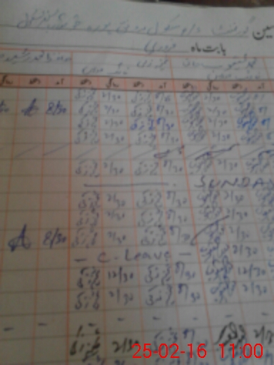| CNIC | Full Name | Designation | R/C | Absence During Last Calender Month |