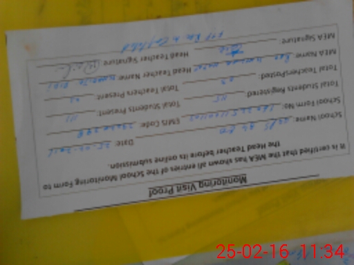 | Monitoring Date: 25-02-2016 | Start Time: 25-02-2016 11:00 AM | End Time: 25-02-2016 11:34 AM | Name of MEA: Kh**** Ha**** (R**** | |