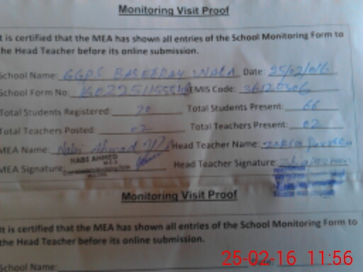 | Certified that this School was Inspected by the Undersigned MEA/DMO Today and the Information Stated Above is as Per Record. | |||||