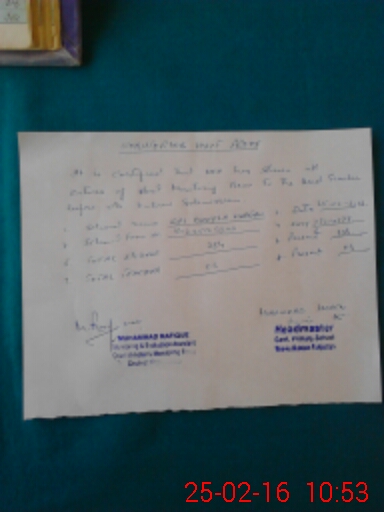 | Name: MU**** AM**** Designation: (School Headmaster's/Headmistress's) PTC Phone/Cell Number: 03**** |
