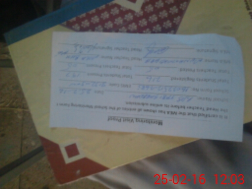 | Name: MU**** JA**** Designation: (School Headmaster's/Headmistress's) PST/PTC/JV Phone/Cell Number: 03**** |