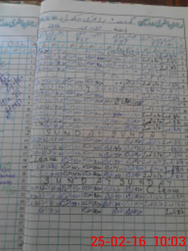 | CNIC | Full Name | Designation | R/C | Absence During Last Calender Month |