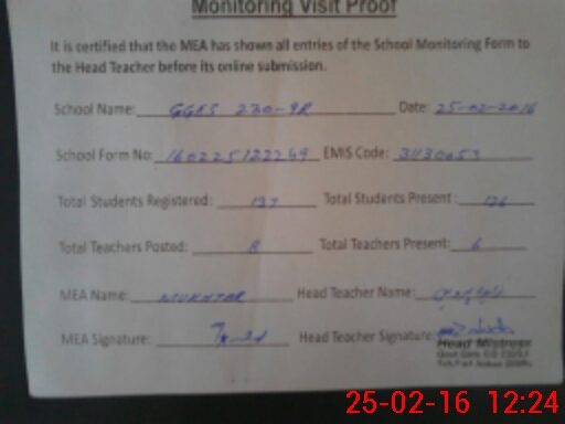 | Certified that this School was Inspected by the Undersigned MEA/DMO Today and the Information Stated Above is as Per Record. | |||||