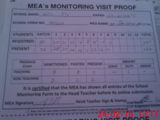 | Certified that this School was Inspected by the Undersigned MEA/DMO Today and the Information Stated Above is as Per Record. | |||||
