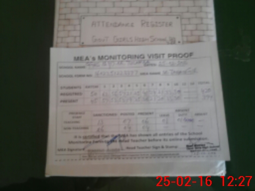 | Attendance Register | Head Teacher | MEA with School | Visit Proof |