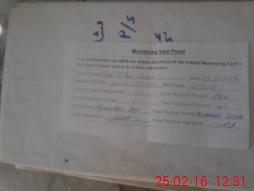 | Attendance Register | Head Teacher | MEA with School | Visit Proof |