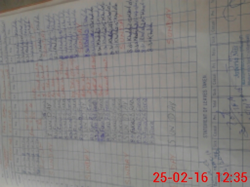 | CNIC | Full Name | Designation | R/C | Absence During Last Calender Month |