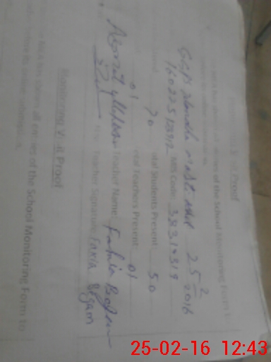 | Monitoring Date: 25-02-2016 | Start Time: 25-02-2016 12:16 PM | End Time: 25-02-2016 12:47 PM | Name of MEA: Mu**** Az**** Ul**** Kh**** Ni**** (R**** | |