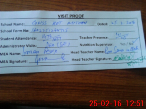 | Attendance Register | Head Teacher | MEA with School | Visit Proof |