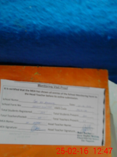 | Certified that this School was Inspected by the Undersigned MEA/DMO Today and the Information Stated Above is as Per Record. | |||||
