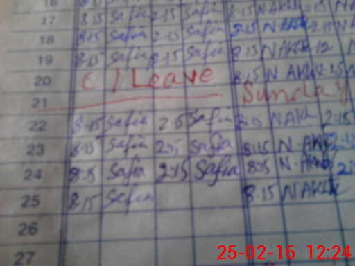 | Leave | Duty | Absent | Maternity | Medical | Ex- Pak |