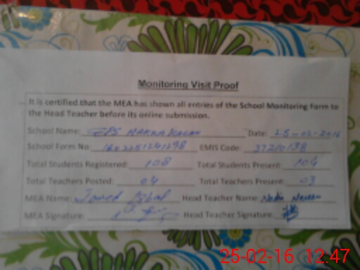 | Certified that this School was Inspected by the Undersigned MEA/DMO Today and the Information Stated Above is as Per Record. | |||||