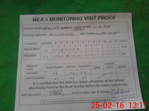| Attendance Register | Head Teacher | MEA with School | Visit Proof |