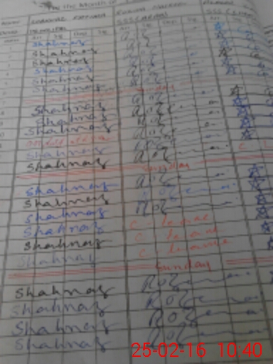 | CNIC | Full Name | Designation | R/C | Absence During Last Calender Month |