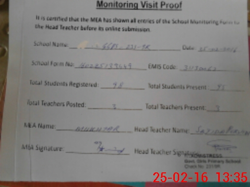 | EMIS Code: 31130062 | Name of School: GGPS CHAK 231/9-R | |||