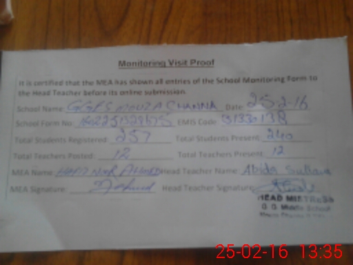 | EMIS Code: 31330138 | Name of School: GGES MOUZA CHANNA | |||