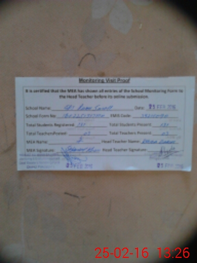 | Certified that this School was Inspected by the Undersigned MEA/DMO Today and the Information Stated Above is as Per Record. | |||||