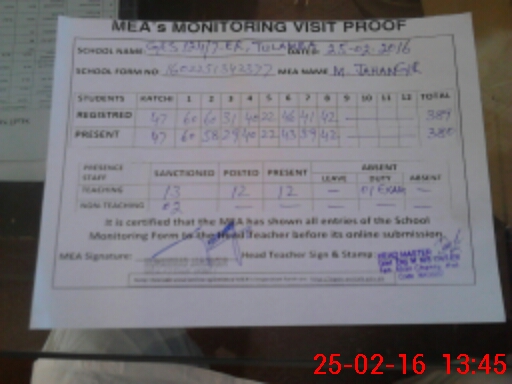 | Certified that this School was Inspected by the Undersigned MEA/DMO Today and the Information Stated Above is as Per Record. | |||||