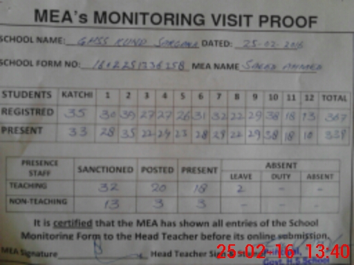 | Attendance Register | Head Teacher | MEA with School | Visit Proof |