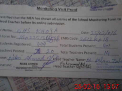 | EMIS Code: 36120018 | Name of School: GHS KHOJA P.O. KHOJA TEH. SHUJABAD DISTRICT MULTAN | |||