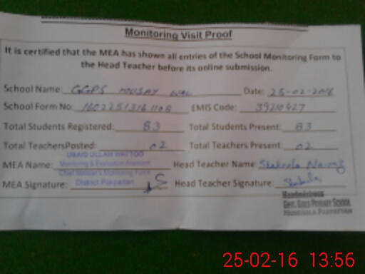 | Certified that this School was Inspected by the Undersigned MEA/DMO Today and the Information Stated Above is as Per Record. | |||||