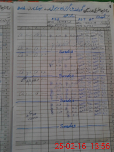 | CNIC | Full Name | Designation | R/C | Absence During Last Calender Month |