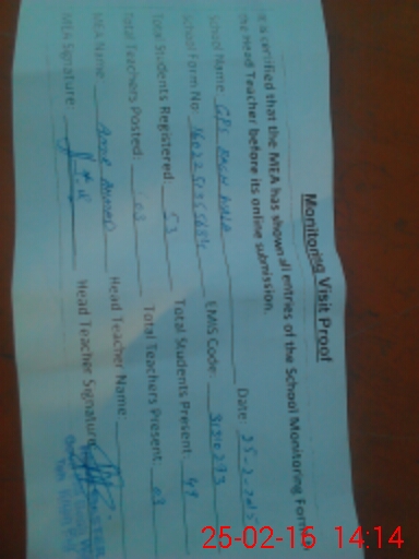 | Certified that this School was Inspected by the Undersigned MEA/DMO Today and the Information Stated Above is as Per Record. | |||||