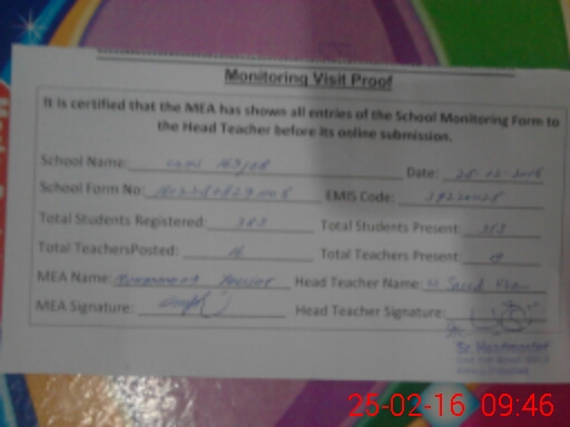 | Certified that this School was Inspected by the Undersigned MEA/DMO Today and the Information Stated Above is as Per Record. | |||||