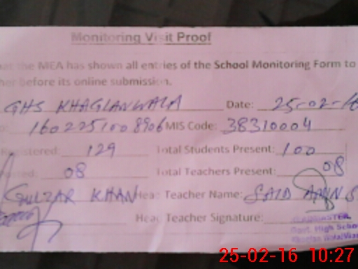 | EMIS Code: 38310004 | Name of School: GHS KHAGLAN WALA | |||