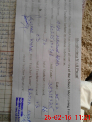 | Certified that this School was Inspected by the Undersigned MEA/DMO Today and the Information Stated Above is as Per Record. | |||||