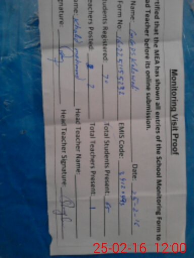 | EMIS Code: 34120493 | Name of School: GGPS KALU WALI | |||