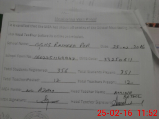 | EMIS Code: 33250611 | Name of School: GGHS RASHEED PUR | |||