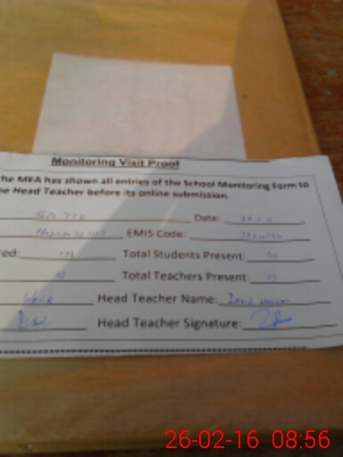 | Attendance Register | Head Teacher | MEA with School | Visit Proof |