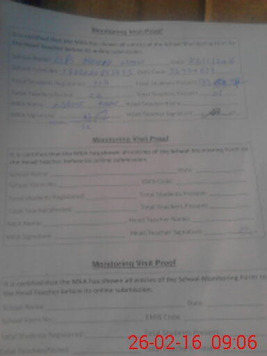 | Attendance Register | Head Teacher | MEA with School | Visit Proof |