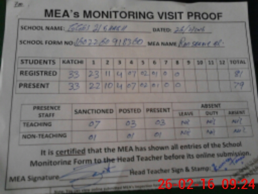 | Attendance Register | Head Teacher | MEA with School | Visit Proof |