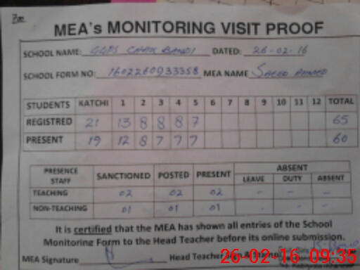 | EMIS Code: 36410495 | Name of School: GGPS CHAK BANDI, NAWAN SHEHR | |||