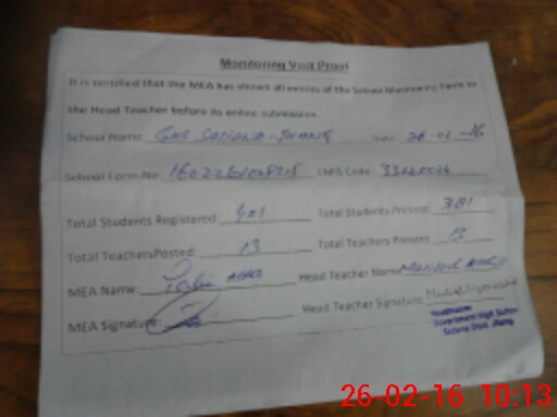 | Attendance Register | Head Teacher | MEA with School | Visit Proof |