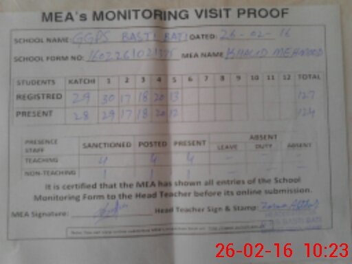 | Certified that this School was Inspected by the Undersigned MEA/DMO Today and the Information Stated Above is as Per Record. | |||||