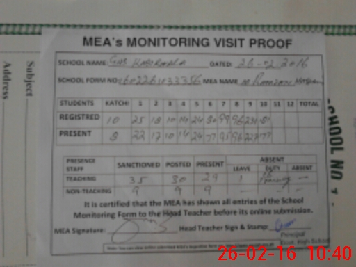 | Certified that this School was Inspected by the Undersigned MEA/DMO Today and the Information Stated Above is as Per Record. | |||||