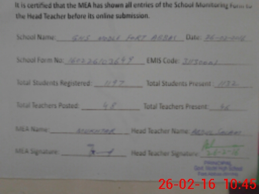 | EMIS Code: 31130001 | Name of School: GHS FORT ABBAS | |||