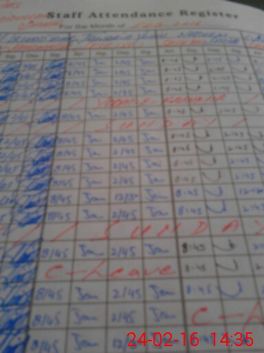 | CNIC | Full Name | Designation | R/C | Absence During Last Calender Month |