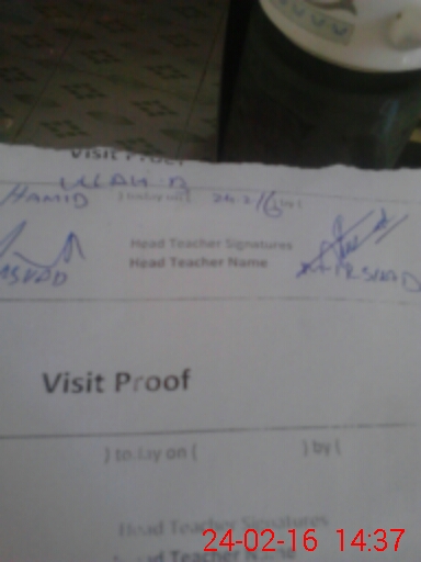 | Attendance Register | Head Teacher | MEA with School | Visit Proof |