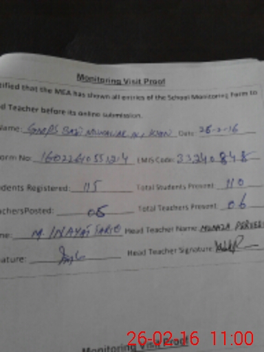 | Certified that this School was Inspected by the Undersigned MEA/DMO Today and the Information Stated Above is as Per Record. | |||||