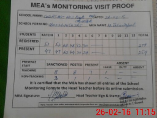 | Certified that this School was Inspected by the Undersigned MEA/DMO Today and the Information Stated Above is as Per Record. | |||||