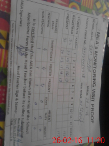 | Monitoring Date: 26-02-2016 | Start Time: 26-02-2016 10:44 AM | End Time: 26-02-2016 11:24 AM | Name of MEA: MU**** SH**** | |